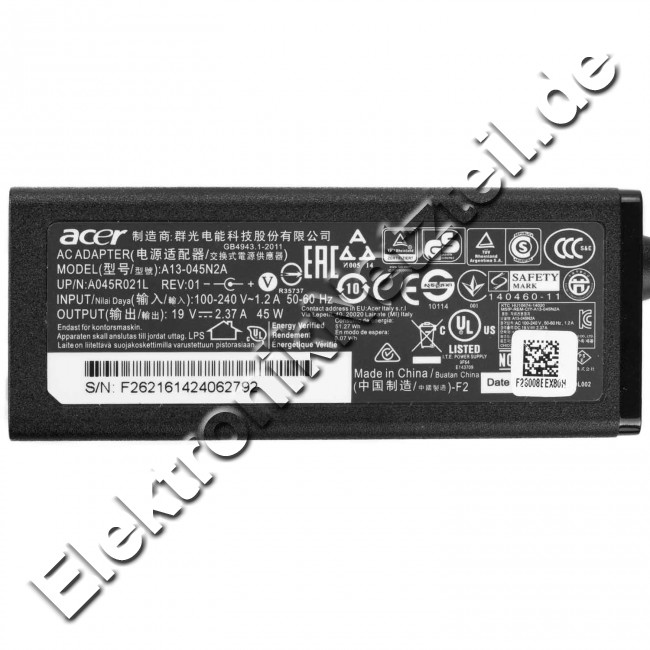 Original Netzteil Acer W045R035L-AC01 45W + Frei Ladekabel